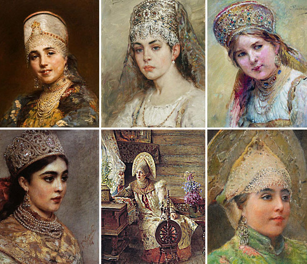 По головному убору Головной убор на Руси был не только защитой от солнца и холода, но и служил индикатором статуса. Незамужние девицы могли ходить с непокрытой головой или же с головным убором, оставлявшим открытой макушку (порой, даже в церкви). Поскольку всё у девушки было скрыто многослойной одеждой, открытая "макушка" была призвана подчеркнуть ее красоту, на радость добрым молодцам.
